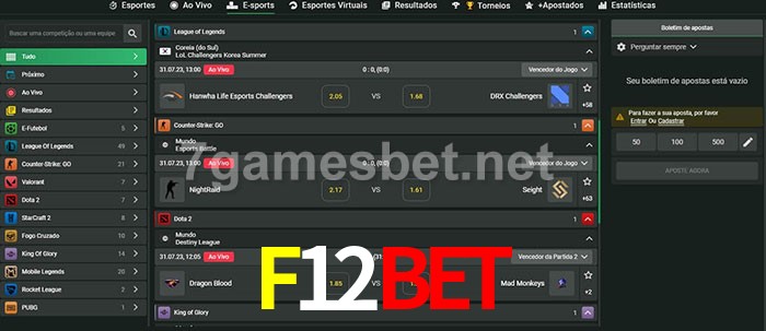 O F12Bet oferece uma grande seleção de opções de apostas em e-sports com probabilidades competitivas